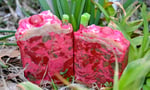 A sweet & juicy dessert combo! It smells delicious with tart cranberries & rhubarb drenched in the bubbly juices from being baked in a buttery pie crust! Topped with a cranberry & rhubarb stalk drenched in delectable oozing pie filling!