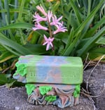 Ingredients: Sodium hydroxide, water, mulberry silk, salt, raw turbinado sugar, coconut milk & buttermilk, kaolin clay, arrowroot powder & colloidal oats. Castor, canola, coconut & RSPO palm oils with manteca(lard). Skin safe mica colorants & fragrance.